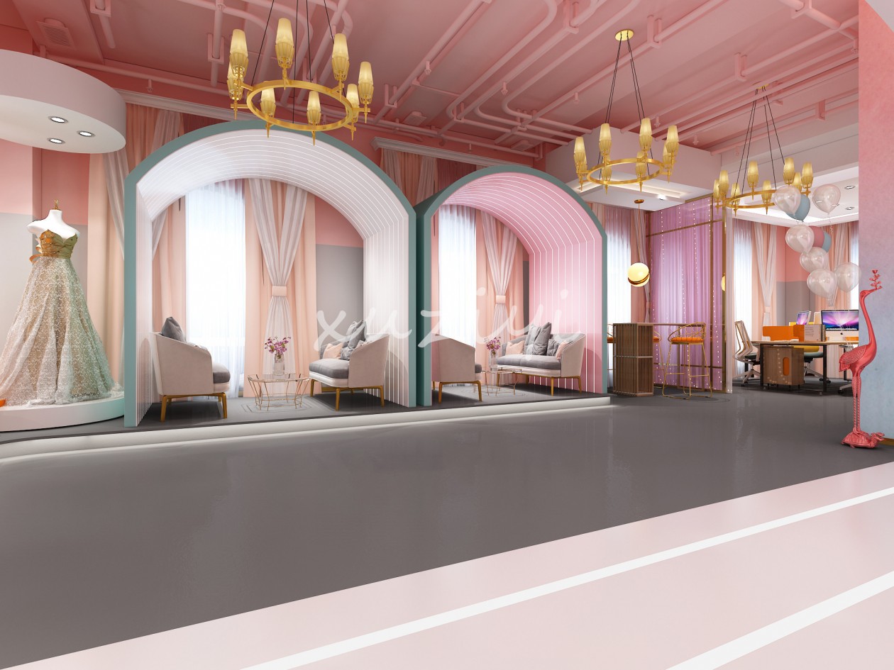 國內的婚紗攝影市場價格競爭激烈,同質化嚴重,婚沙影樓裝修格調偏低,服務模式過分商業化, 所以導致顧客滿意度較低,無一枝獨秀的影樓。 針對此案例業主為老客戶,在相對較熟悉整體運營思路的前提下,石家莊專業婚沙影樓裝修公司在設計時特意強調了品牌的 一致性,只是隨著時代演變,目標顧客群體的轉變,專業婚沙影樓裝修做了相應風格上的調整,具體表現如下: 首先是品質,產品的品質是企業經營的根本,石家莊好的婚沙影樓裝修公司如何提高產品的品質是第一命題,同時好的產品 品質與展示陳列也有很大的關系,石家莊專業婚沙影樓裝飾公司杜絕超市化產品陳列方式,不求多,但求精,適當放大產品的精致性,所以大部分產品均通過電腦展示,尤其是放大照片和樣本以及婚紗禮服。 再說服務,石家莊好的婚沙影樓裝修公司服務是企業軟實力的具體表現,絕大部分影樓都存在過度營銷的問題,所以我們更應該追求以顧客為中心的服務模式,以專業度,親切度和溝通度建立良好的銷售體系,形成良好的口碑。 石家莊婚沙影樓裝飾公司針對以上表述,空間的動線安排,產品的陳列都做了相應的安排,比如:取締一般影樓前臺正 對門口的作法,突出服務,淡化商業氛圍,所以取名服務臺,集合收款、飲料服務,音響控制、咨 詢等功能,以位置及方向更能讓各功能區串聯起來形成一種整體性,前廳主要突出浪漫氣氛,吸引 路人眼球而未做大量功能處理。